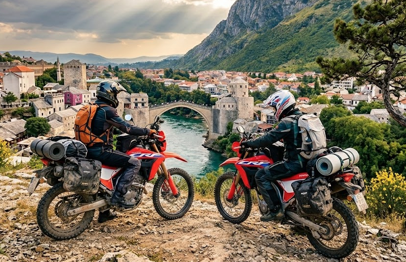 Lightweight dual-sport rentals with accommodation in heart of Mostar — close to scenic routes, gravel tracks, and sections of the Balkan TET.