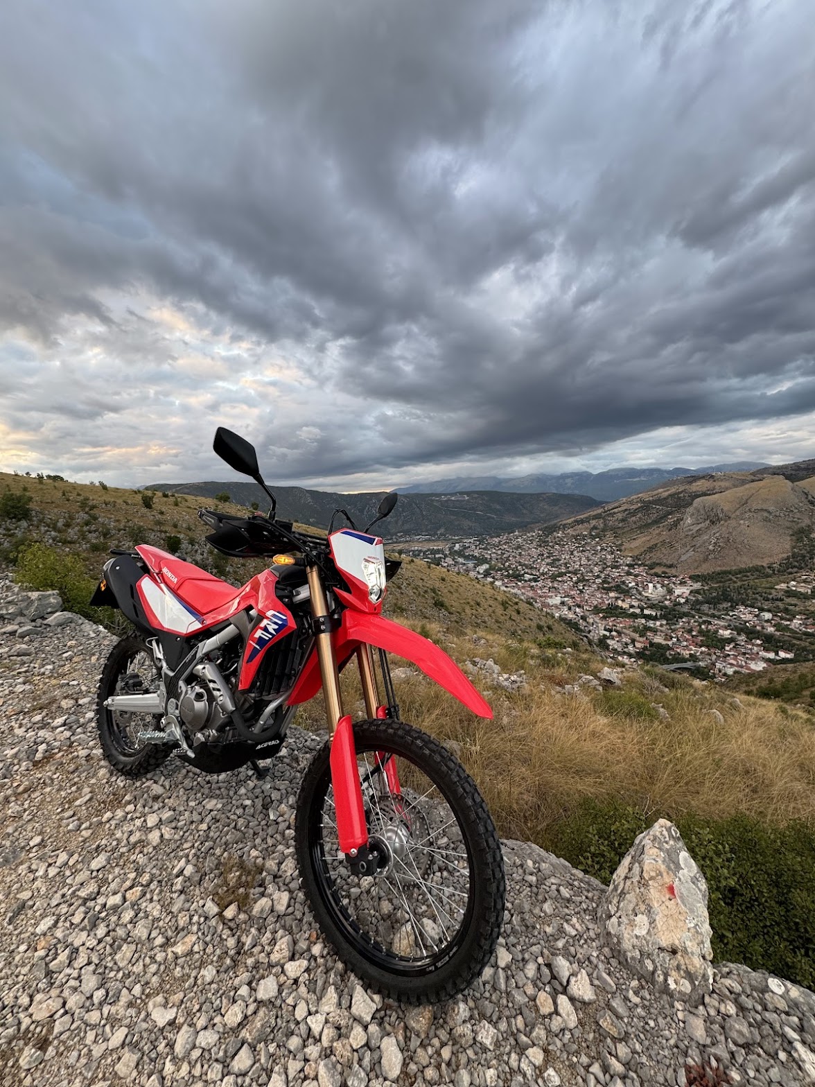 We’re a small adventure company just getting started, and our fleet begins with two highly capable bikes built for the rugged terrain of Herzegovina: the 2025 Honda CRF300L. Lightweight, reliable, and incredibly versatile, the CRF300L is widely considered one of the best dual-sport bikes for exploring trails, gravel roads, and mountain terrain thanks to its agile handling, smooth power delivery, and long-travel suspension. Our bikes are equipped with quality upgrades including ProTaper handlebars, Acerbis handguards, Acerbis skid plates and more. We’re starting small with two well-prepared machines, but our goal is to continue expanding the fleet as Mostar ADV grows.